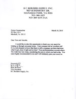 Thanks to our customers for their positive feedback on jobs recently completed. Click on letter thumbnails to see full size.
